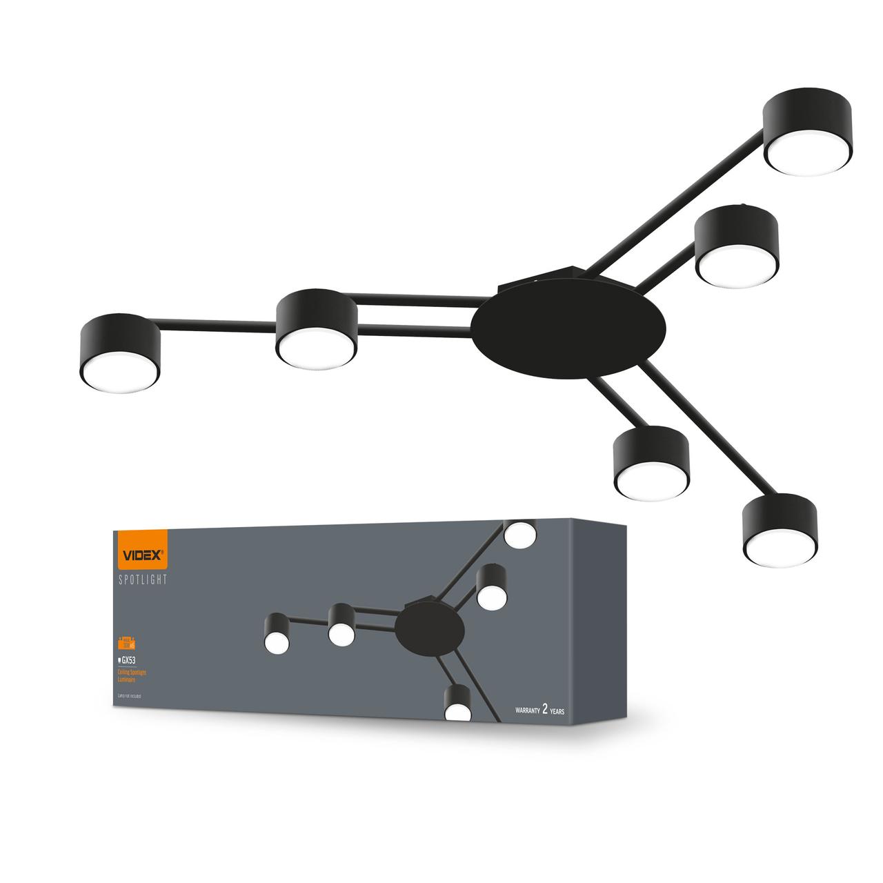 Світильник VIDEX під лампу 6xGX53 накладний Чорний VL-SPF21B-B