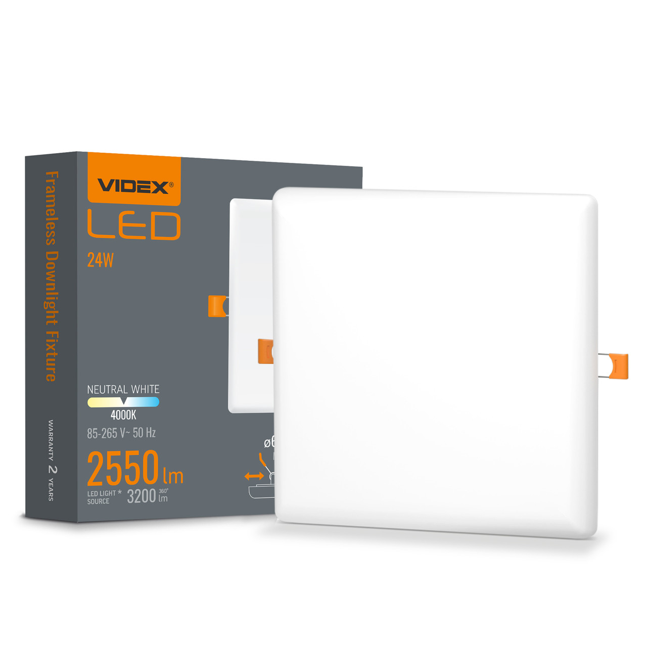 LED світильник безрамковий квадратний VIDEX VLE-DLFS-244 24W 4000K 220V